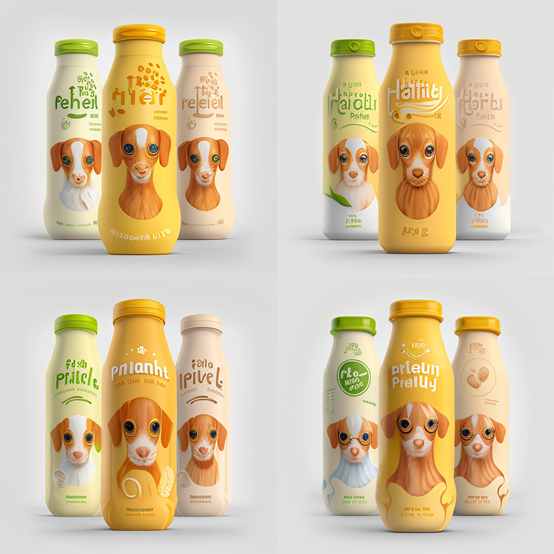 這也行?那就給它點難度,我要模糊一下概念,來一款花生牛奶,要求PET材質,還需要表達人與自然的和諧!