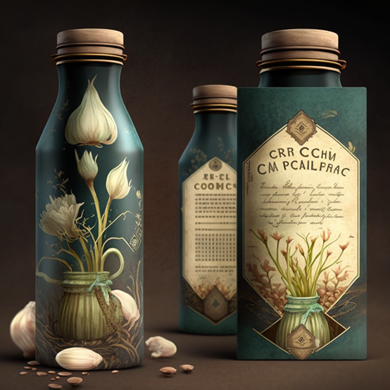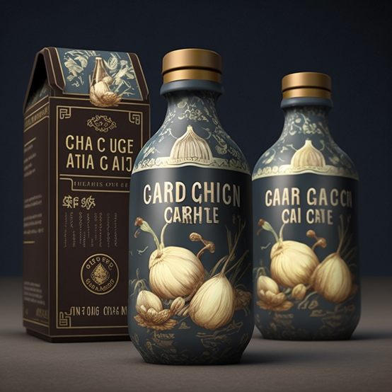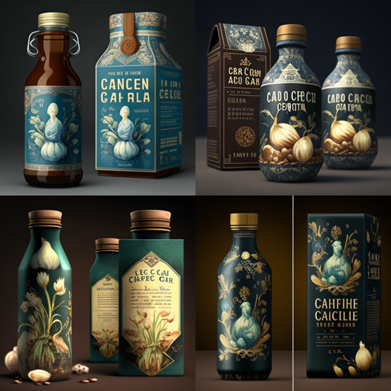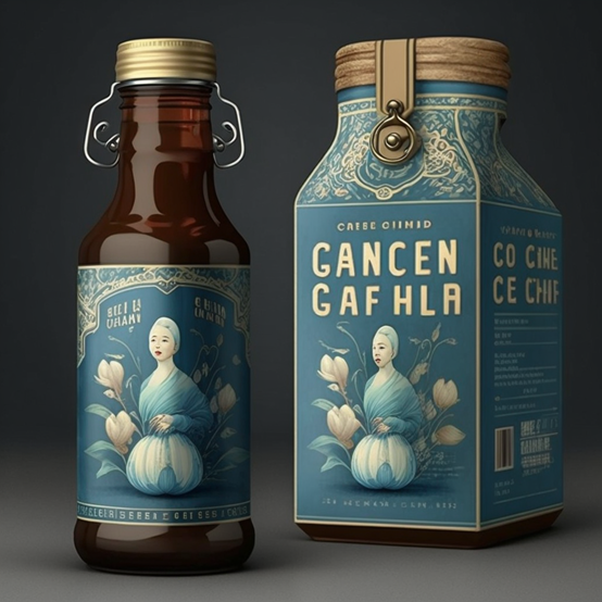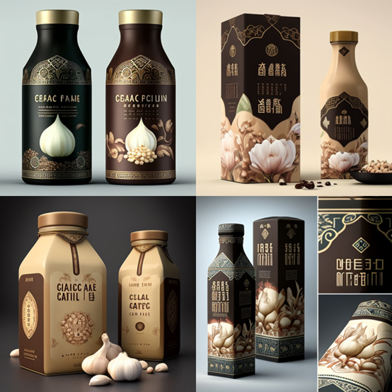 某脫口秀演員說過“喝咖啡的怎么能和吃大蒜的在一起呢?”于是我要求AI幫我設計一款,融合了咖啡和大蒜的中國風包裝。結果如下!