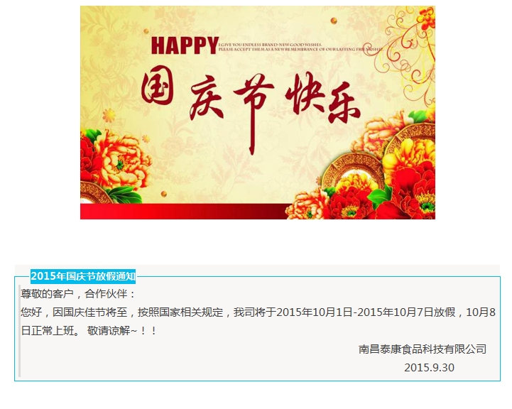 2015國慶節放假通知