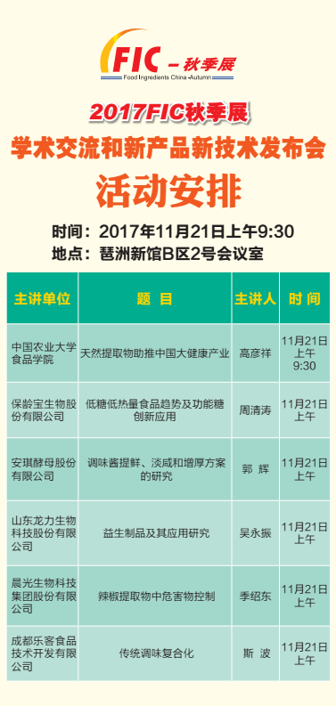 名稱:2017年第十七屆全國秋季食品添加劑和配料展覽會